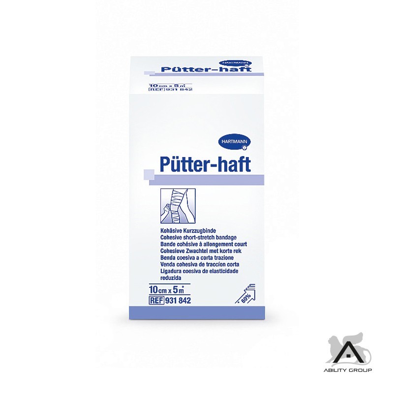 Pütter-haft è una benda coesiva in cotone a corta estensibilità (circa del 60%). Ha effetto coesivo su entrambi i lati per un ottimo fissaggio; elevata pressione di lavoro con leggera pressione a riposo. Può essere utilizzata su pazienti a riposo. Traspirante, può essere sterilizzata in autoclave a 134°C.